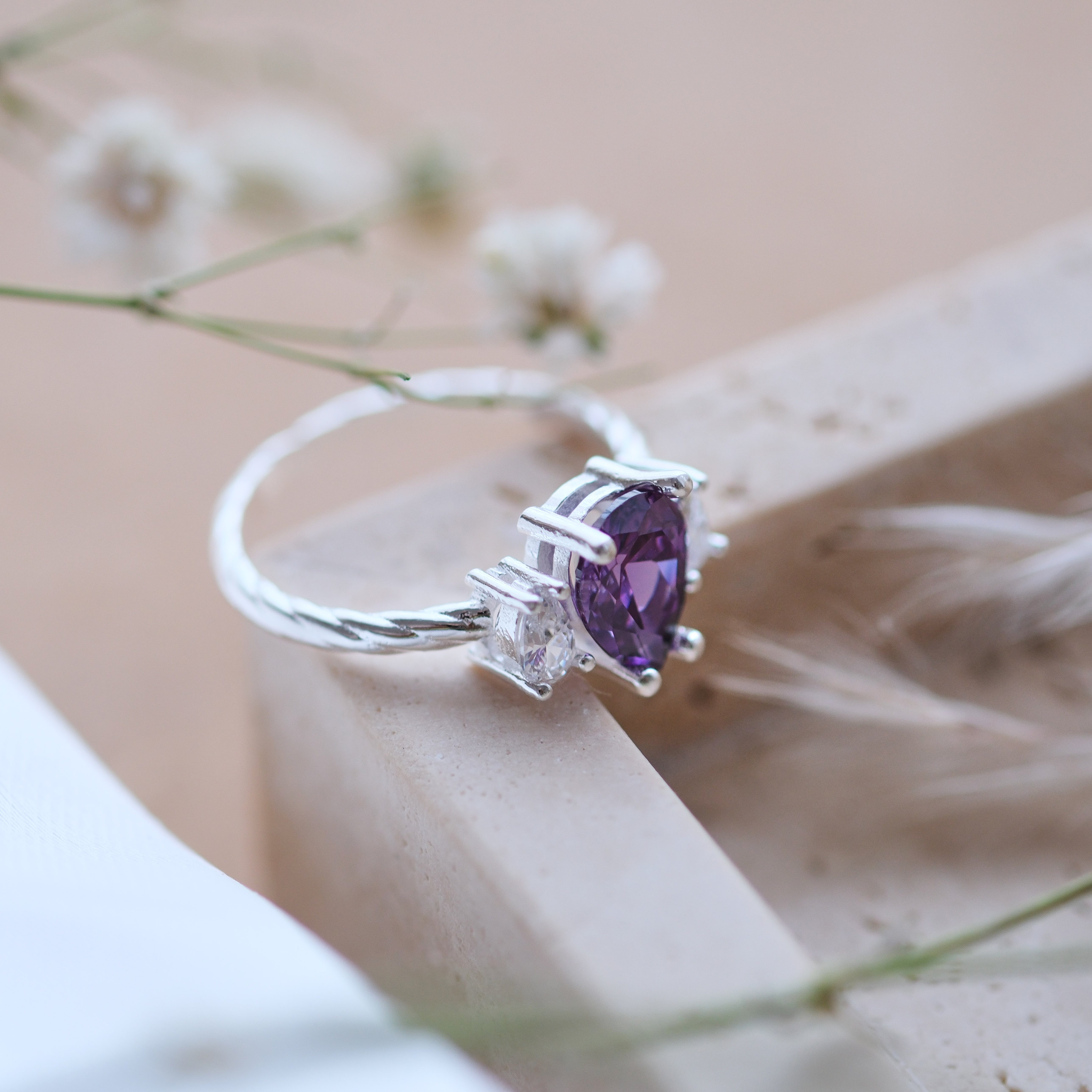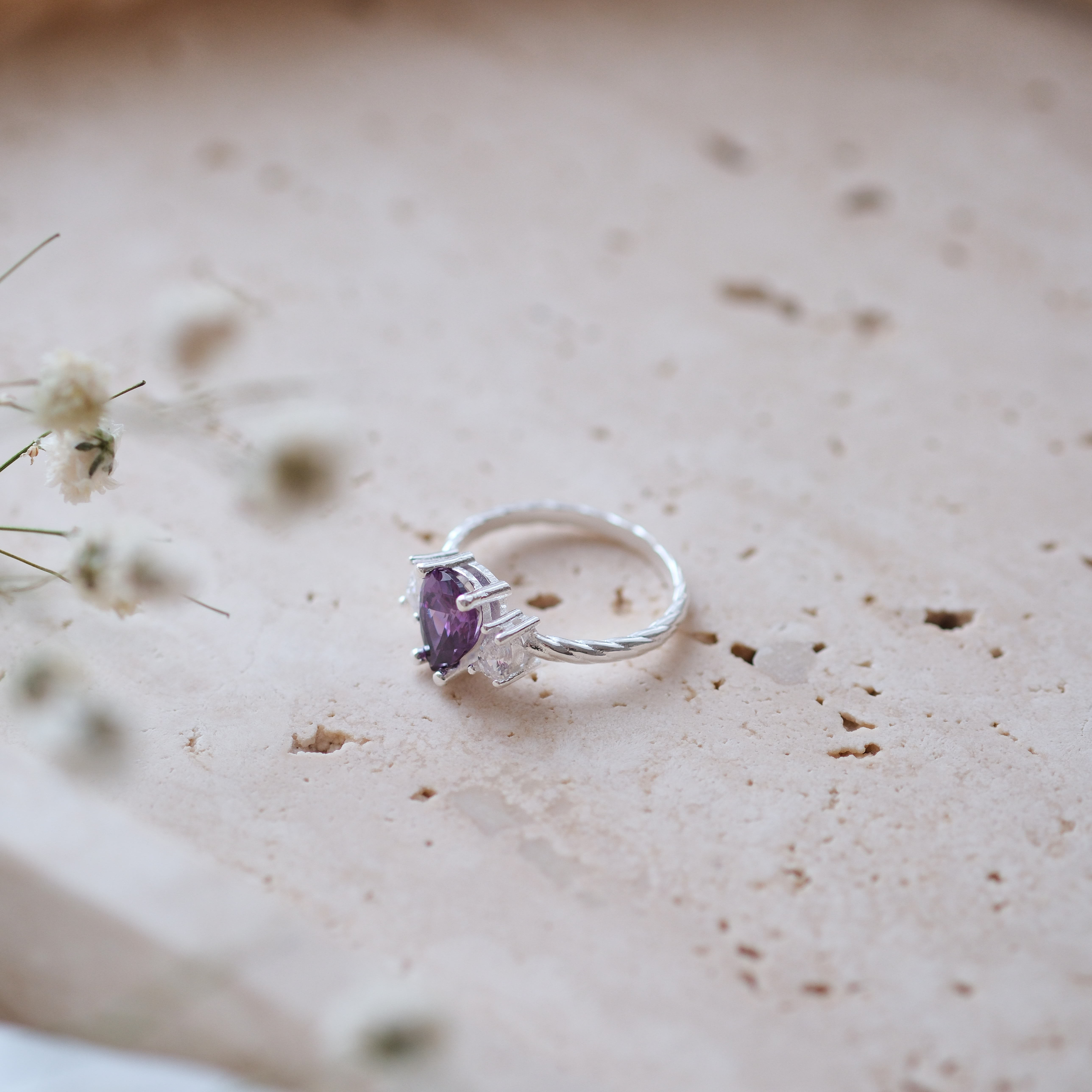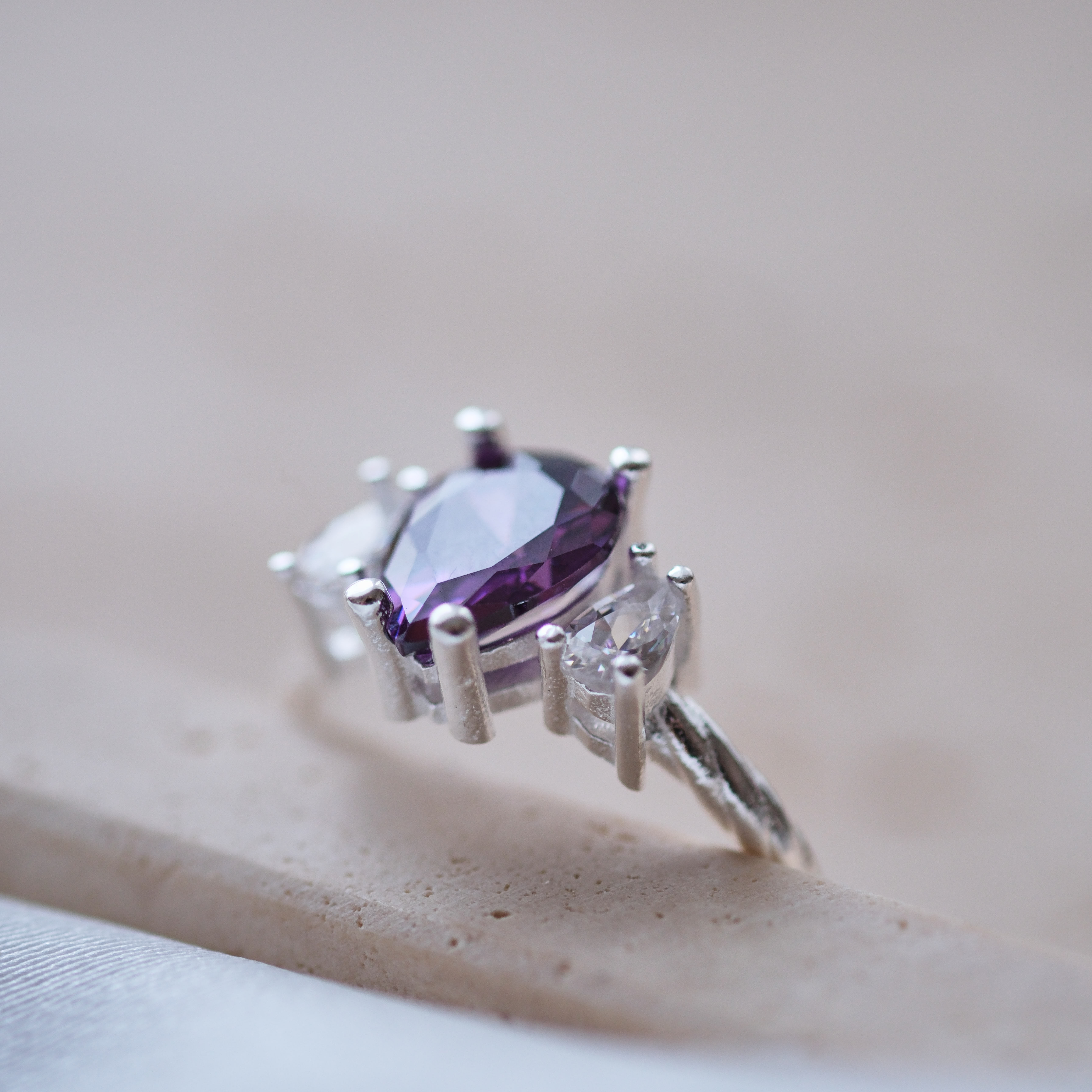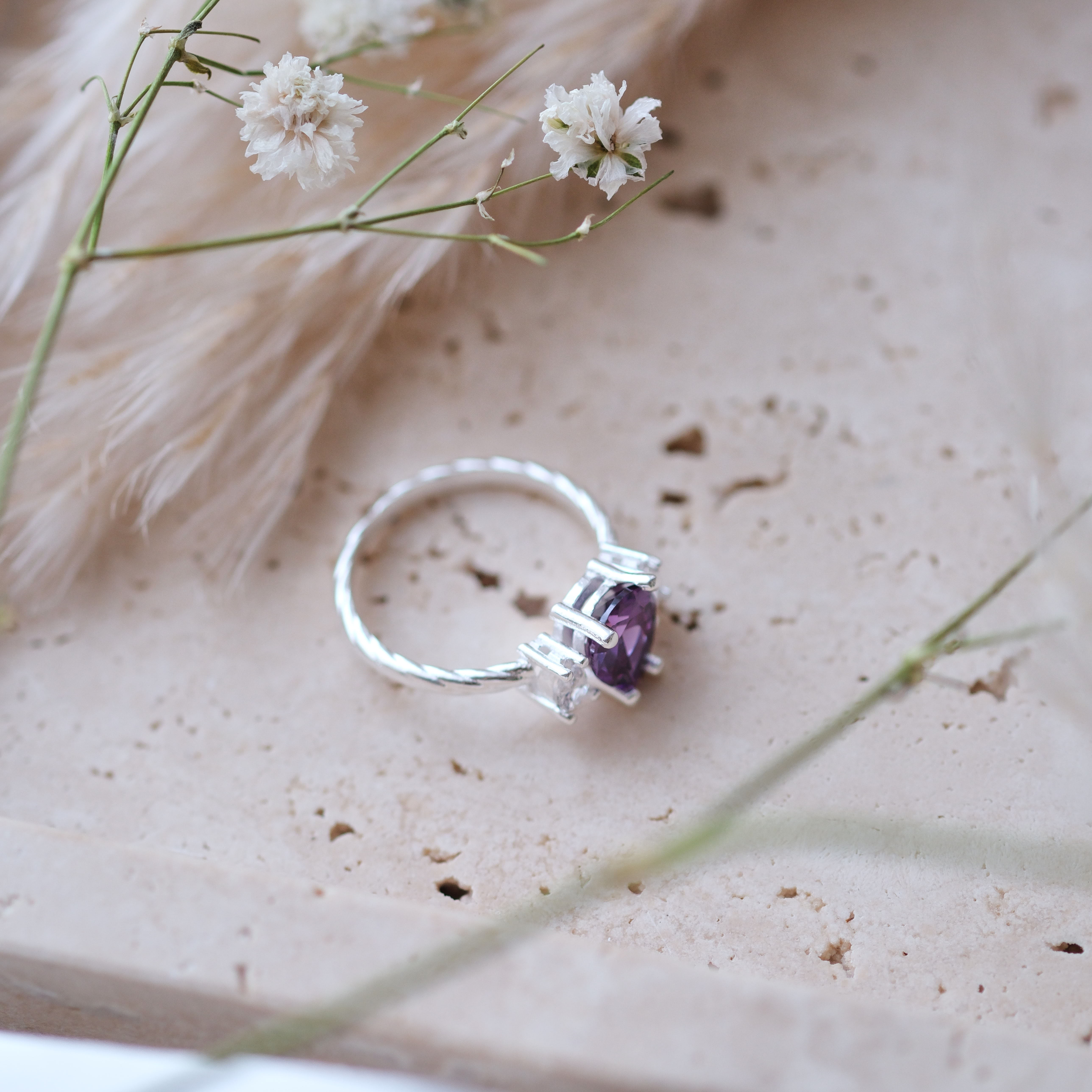 Doğal Ametist Taşlı Özel Tasarım Yüzük