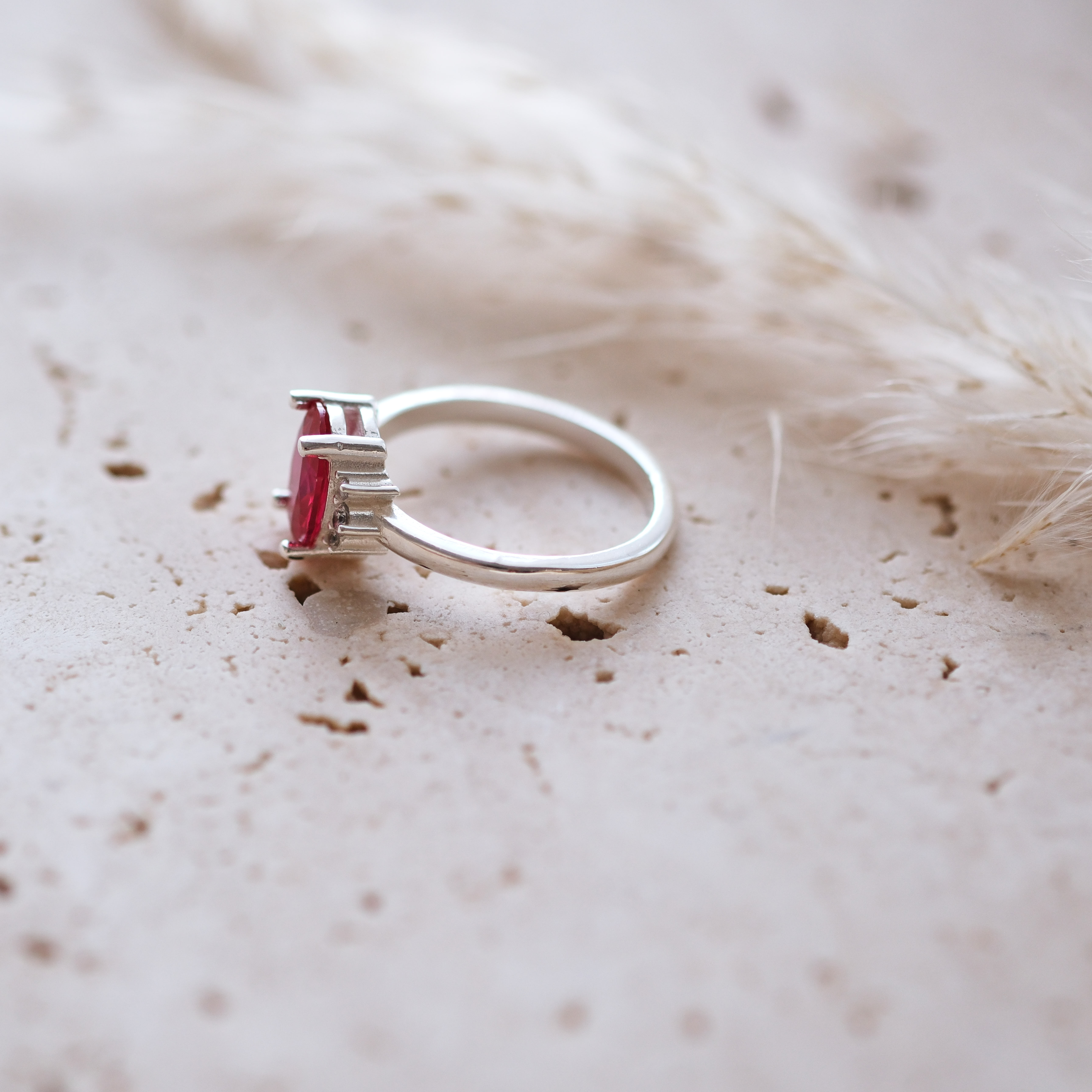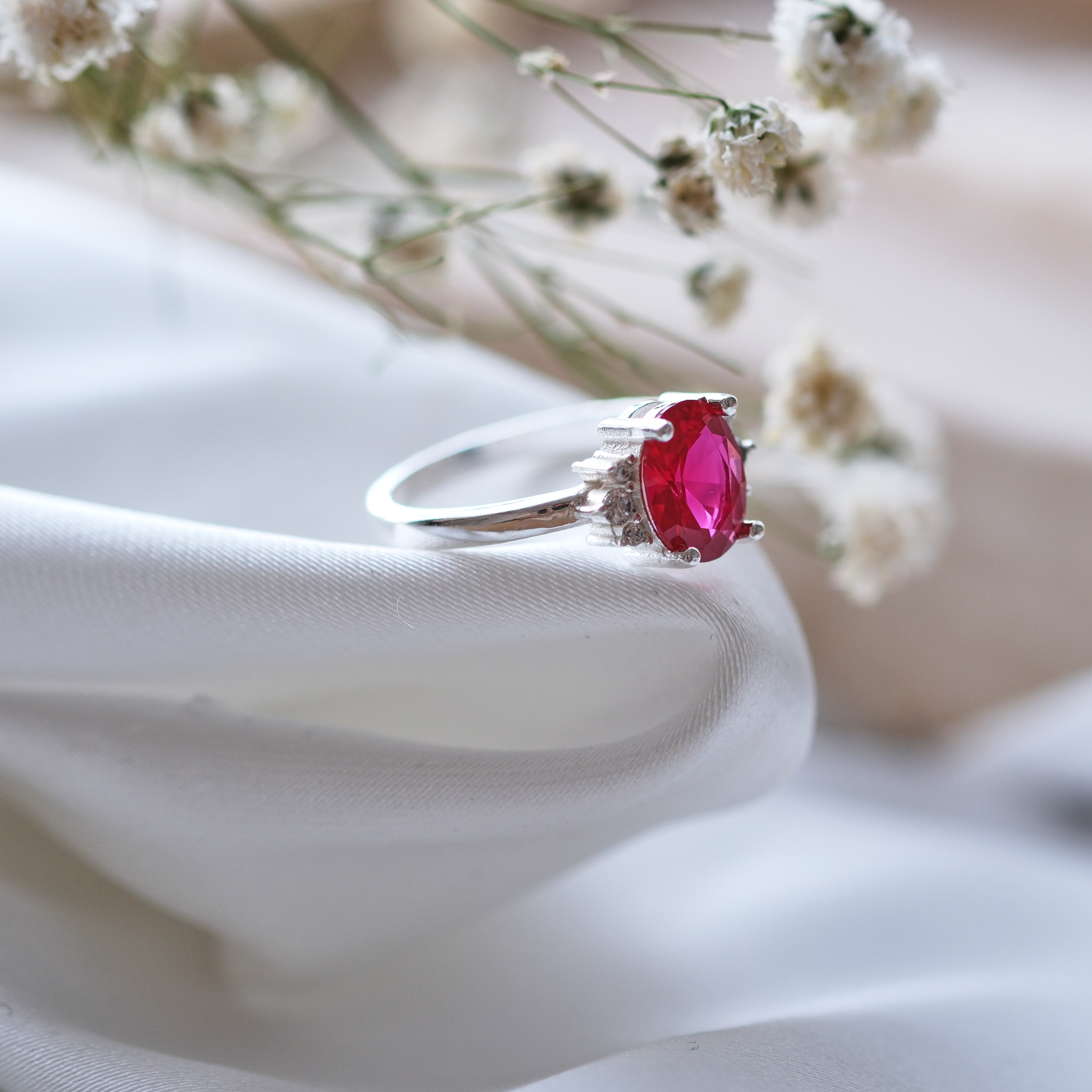 • Taş: Doğal Ruby - Yüzüğün en göz alıcı noktası, %100 doğal ruby taşından üretilmiştir. Ruby, dünyanın en değerli taşlarından biri olup, tutku ve aşkı simgeler.